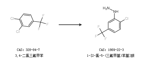 1.通过3,4-二氯三氟甲苯合成1-[2-氯-5-(三氟甲基)苯基]肼