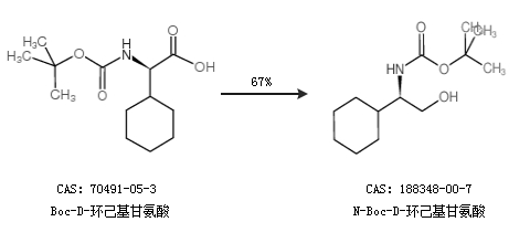 1.通过Boc-D-环己基甘氨酸合成N-Boc-D-环己基甘氨酸,收率约67%;