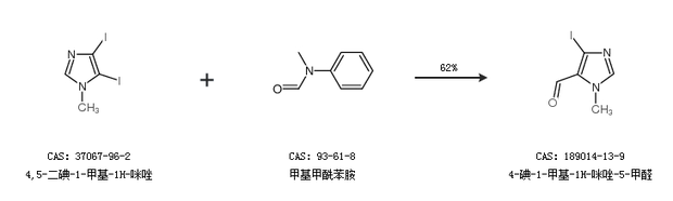 1.通过4,5-二碘-1-甲基-1H-咪唑和甲基甲酰苯胺合成4-碘-1-甲基-1H-咪唑-5-甲醛,收率约62%;