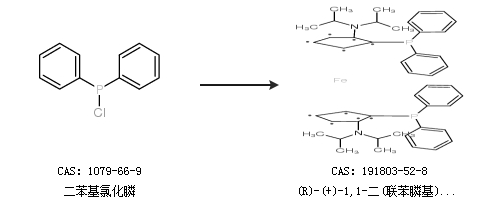 1.通过二苯基氯化膦合成(R)-(+)-1,1-二(联苯膦基)-2,2-二(N,N-二异丙基酰胺)二茂(络)铁