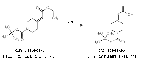 1.通过叔丁基 4-(2-乙氧基-2-氧代亚乙基)哌啶-1-羧酸合成1-叔丁氧羰基哌啶-4-亚基乙酸,收率约99%;