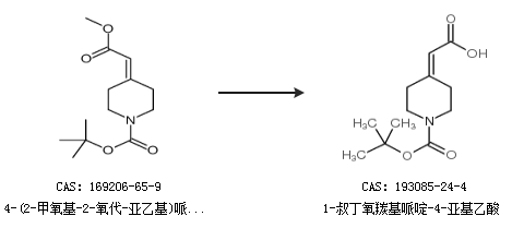 2.通过4-(2-甲氧基-2-氧代-亚乙基)哌啶-1-羧酸叔丁酯合成1-叔丁氧羰基哌啶-4-亚基乙酸