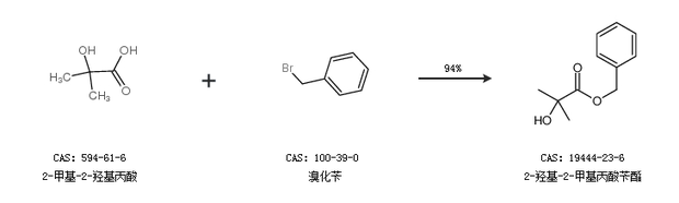 1.通过2-甲基-2-羟基丙酸和溴化苄合成2-羟基-2-甲基丙酸苄酯,收率约94%;