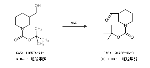 1.通过N-Boc-3-哌啶甲醇合成(R)-1-BOC-3-哌啶甲醛,收率约96%;