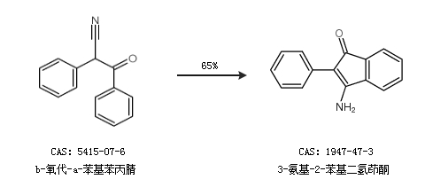 1.通过b-氧代-a-苯基苯丙腈合成3-氨基-2-苯基二氢茚酮,收率约65%;