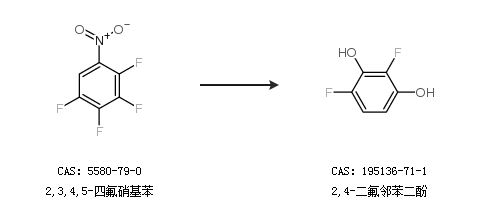 1.通过2,3,4,5-四氟硝基苯合成2,4-二氟邻苯二酚