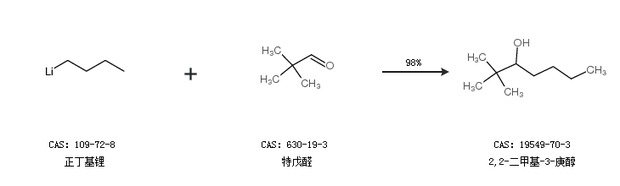 1.通过正丁基锂和特戊醛合成2,2-二甲基-3-庚醇,收率约98%;
