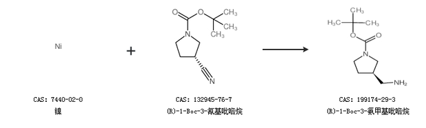 1.通过镍和(R)-1-Boc-3-氰基吡咯烷合成(R)-1-Boc-3-氨甲基吡咯烷