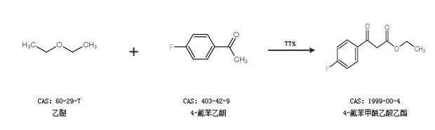 2.通过乙醚和4-氟苯乙酮合成4-氟苯甲酰乙酸乙酯,收率约77%;