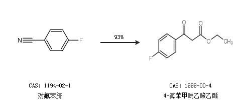1.通过对氟苯腈合成4-氟苯甲酰乙酸乙酯,收率约93%;