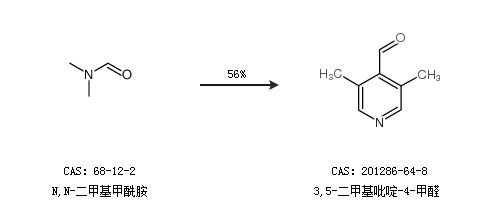 1.通过N,N-二甲基甲酰胺合成3,5-二甲基吡啶-4-甲醛,收率约56%;