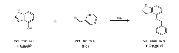 1.通过4-羟基吲哚和溴化苄合成4-苄氧基吲哚,收率约95%;