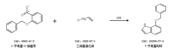 2.通过1-苄氧基-2-硝基苯和乙烯基溴化镁合成7-苄氧基吲哚,收率约12%;