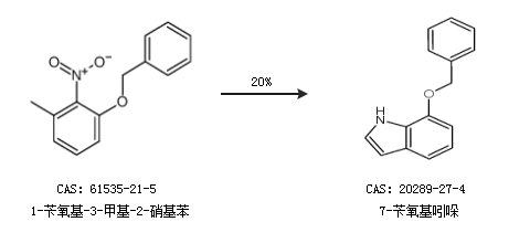 1.通过1-苄氧基-3-甲基-2-硝基苯合成7-苄氧基吲哚,收率约20%;