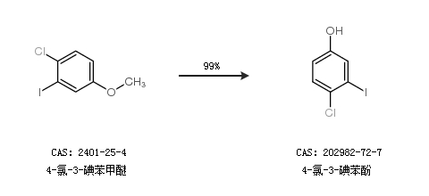 1.通过4-氯-3-碘苯甲醚合成4-氯-3-碘苯酚,收率约99%;