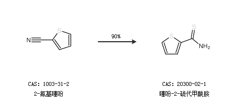 2.通过2-氰基噻吩合成噻吩-2-硫代甲酰胺,收率约90%;
