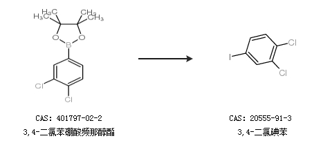 2.通过3,4-二氯苯硼酸频那醇酯合成3,4-二氯碘苯