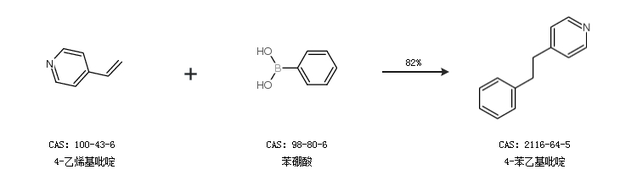1.通过4-乙烯基吡啶和苯硼酸合成4-苯乙基吡啶,收率约82%;