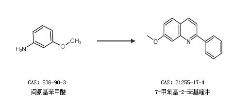 1.通过间氨基苯甲醚合成7-甲氧基-2-苯基喹啉