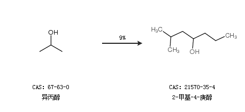 1.通过异丙醇合成2-甲基-4-庚醇,收率约9%;