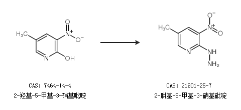 2.通过2-羟基-5-甲基-3-硝基吡啶合成2-肼基-5-甲基-3-硝基砒啶