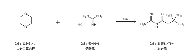 2.通过1,4-二氧六环和盐酸胍合成Boc-胍,收率约59%;