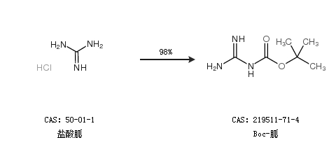 1.通过盐酸胍合成Boc-胍,收率约98%;
