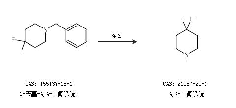 1.通过1-苄基-4,4-二氟哌啶合成4,4-二氟哌啶,收率约94%;