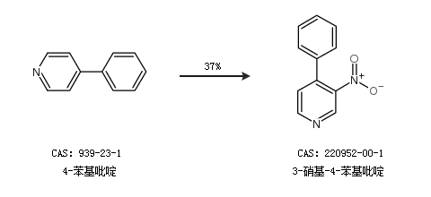 2.通过4-苯基吡啶合成3-硝基-4-苯基吡啶,收率约37%;