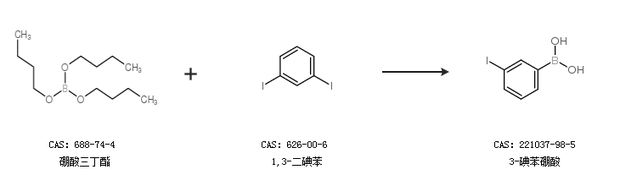1.通过硼酸三丁酯和1,3-二碘苯合成3-碘苯硼酸