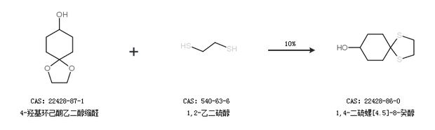 1.通过4-羟基环己酮乙二醇缩醛和1,2-乙二硫醇合成1,4-二硫螺[4.5]-8-癸醇,收率约10%;
