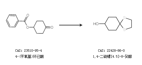 2.通过4-(苄氧基)环已酮合成1,4-二硫螺[4.5]-8-癸醇