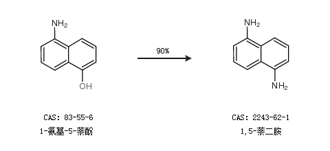 1.通过1-氨基-5-萘酚合成1,5-萘二胺,收率约90%;