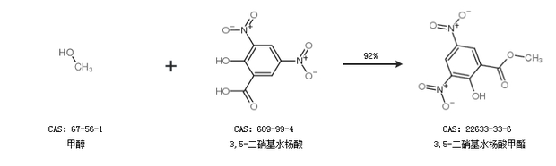 1.通过甲醇和3,5-二硝基水杨酸合成3,5-二硝基水杨酸甲酯,收率约92%;