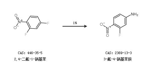 2.通过2,4-二氟-1-硝基苯合成3-氟-4-硝基苯胺,收率约1%;