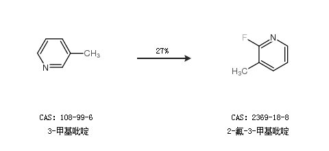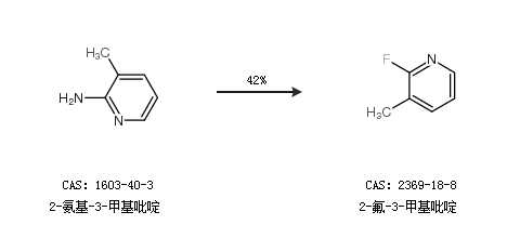 1.通过2-氨基-3-甲基吡啶合成2-氟-3-甲基吡啶,收率约42%;