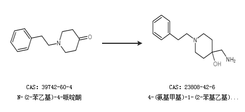 1.通过N-(2-苯乙基)-4-哌啶酮合成4-(氨基甲基)-1-(2-苯基乙基)-4-哌啶醇