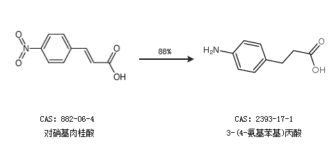 2.通过对硝基肉桂酸合成3-(4-氨基苯基)丙酸,收率约88%;