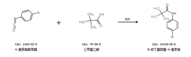 1.通过4-溴异氰酸苯酯和三甲基乙酸合成N-叔丁基羰基-4-溴苯胺,收率约82%;