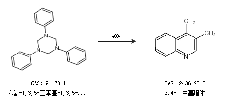 1.通过六氢-1,3,5-三苯基-1,3,5-三嗪合成3,4-二甲基喹啉,收率约48%;