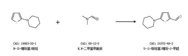 2.通过N-(2-噻吩基)哌啶和N,N-二甲基甲酰胺合成5-(1-哌啶基)噻吩-2-甲醛