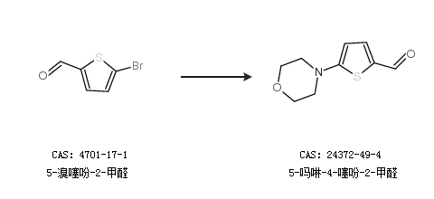 2.通过5-溴噻吩-2-甲醛合成5-吗啉-4-噻吩-2-甲醛