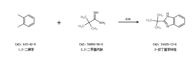 2.通过1,2-二碘苯和2,2-二甲基丙脒合成2-叔丁基苯咪唑,收率约63%;