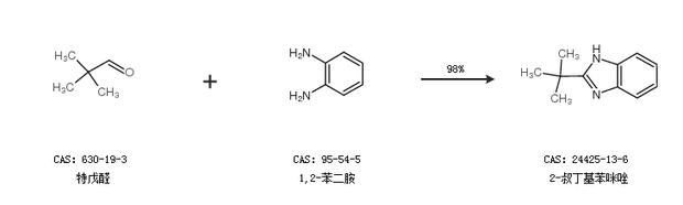 1.通过特戊醛和1,2-苯二胺合成2-叔丁基苯咪唑,收率约98%;