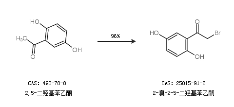 1.通过2,5-二羟基苯乙酮合成2-溴-2-5-二羟基苯乙酮,收率约96%;