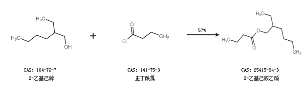 2.通过2-乙基己醇和正丁酰氯合成2-乙基己酸乙酯,收率约57%;