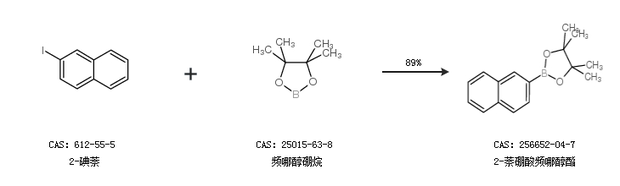 1.通过2-碘萘和频哪醇硼烷合成2-萘硼酸频哪醇酯,收率约89%;