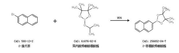 2.通过2-溴代萘和异丙醇频哪醇硼酸酯合成2-萘硼酸频哪醇酯,收率约95%;