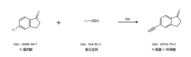 2.通过5-溴茚酮和氰化亚铜合成5-氰基-1-茚满酮,收率约78%;
