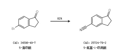1.通过5-溴茚酮合成5-氰基-1-茚满酮,收率约82%;